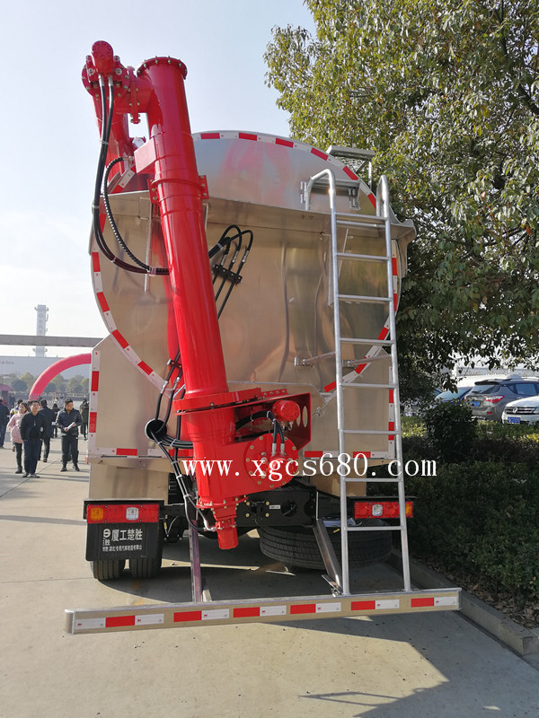 這次車展中還有一輛全新車輛種類的介入,散裝飼料車,對您沒看錯,是散裝飼料車,很平常的車輛種類,但以前的散裝飼料車輸結構簡單下貨麻凡,上貨時又太亂,過磅時誤差比較大,無法核對等等諸多問題!咱們這臺散裝飼料車,是國內(nèi)首臺全智能化散裝飼料運輸車,自動進料,出料自動計量,定點出料,出料口可隨意定點,六米半徑內(nèi)定點出料,內(nèi)分六倉,可分裝不同品種類農(nóng)作物,不混料,不限種類,只要是顆粒內(nèi)農(nóng)產(chǎn)品均可,適合各類大型養(yǎng)殖場,食品加工廠等等,無需包裝即可長途運輸,省時省力最省錢!